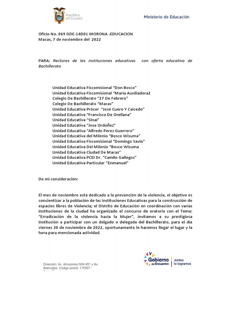 Bachillerato Dirección Av. Amazonas N34451 y Av. Atahualpa. Código